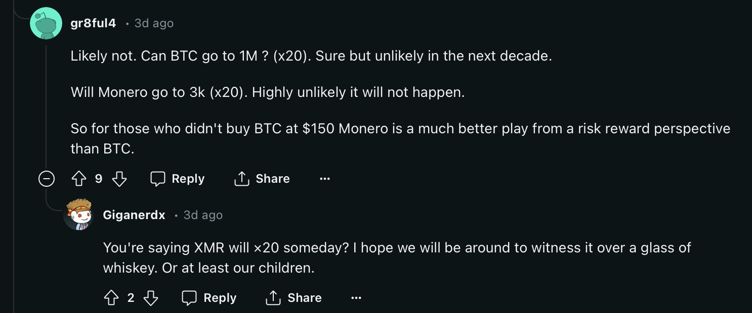 Du tar ett exempel på någon random Reddit användare som förespråkar att du ska investera i Monero istället för Bitcoin, och det gör hela projektet till en scam?