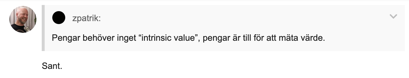 …och bitcoin är inte pengar.