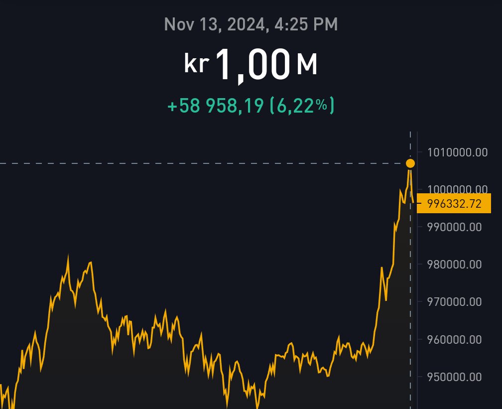 Utöver det så kan man få drygt 1 miljon svenska skräp-kronor för 1 Bitcoin.