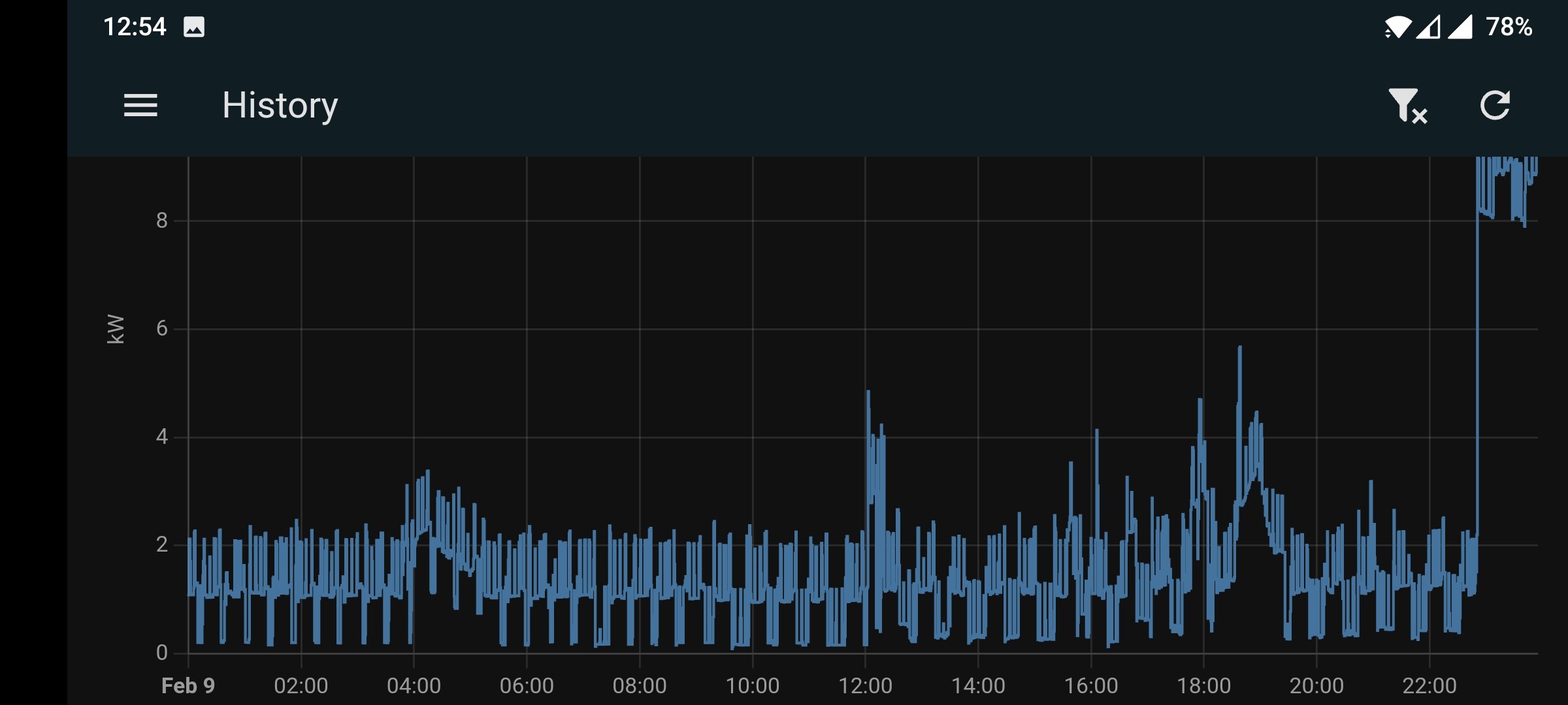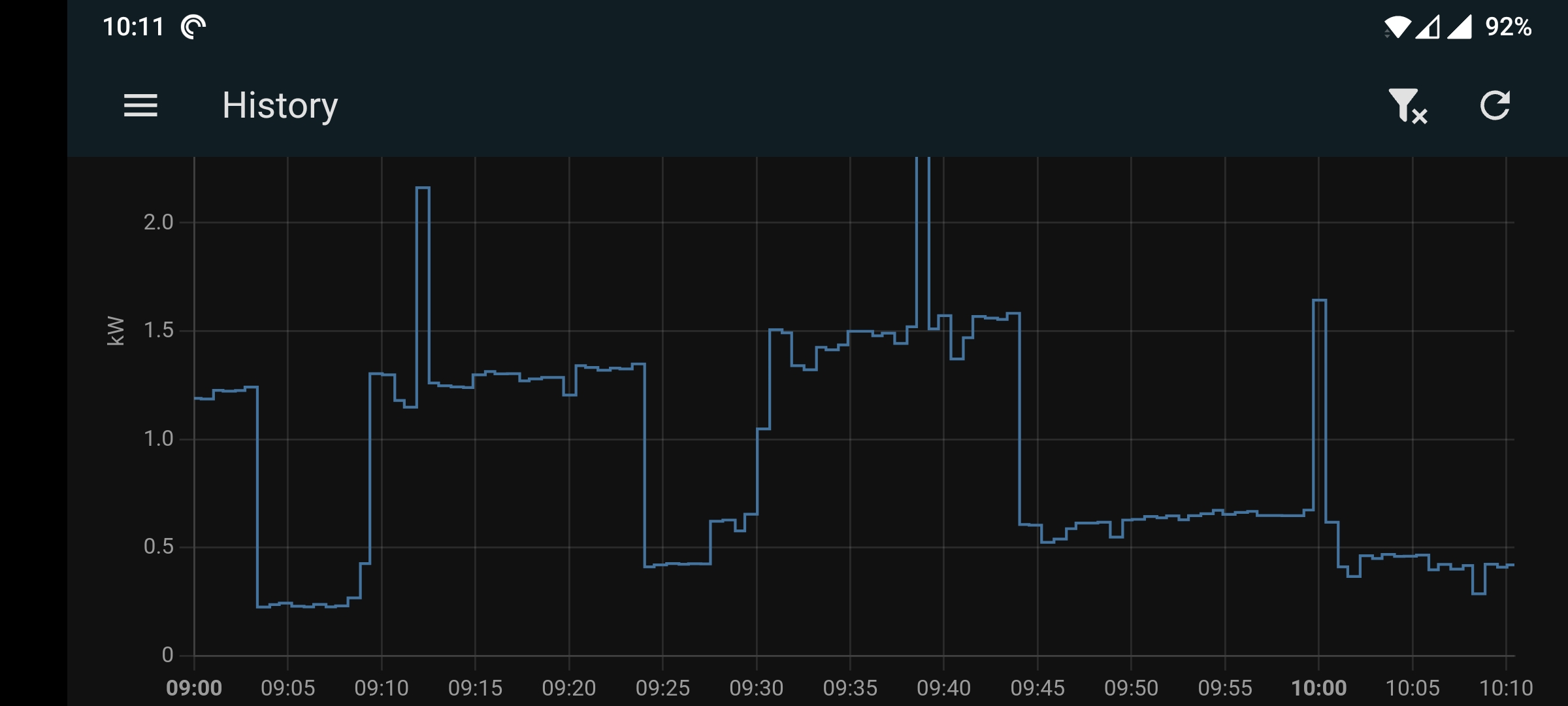 Såhär ser vår elmätare ut, som synes går den upp och ner hela tiden.