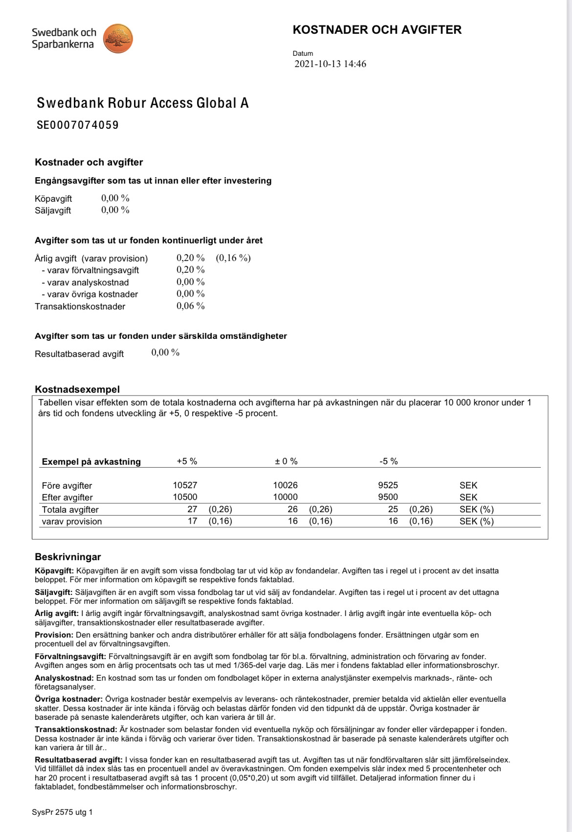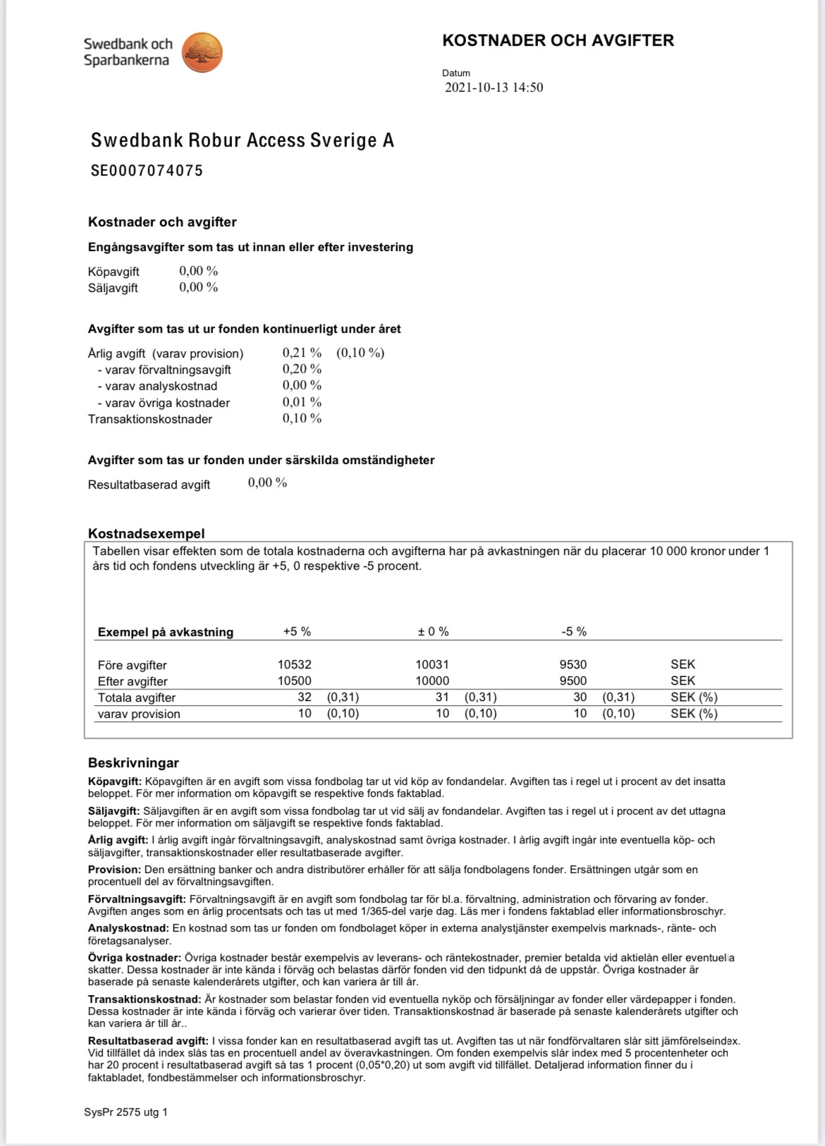 Det är inte så lätt att se heller, min bank gömde det väldigt bra. Jag tycker det borde införas lag på att försäkringsbolag och banker ska göra avgifterna tydligare, typ som Lysa där det står typ på framsidan vad du faktiskt betalar. Sverige skryter ofta om att vi har bra konsumentskydd men i detta området finns det saker att förbättra.