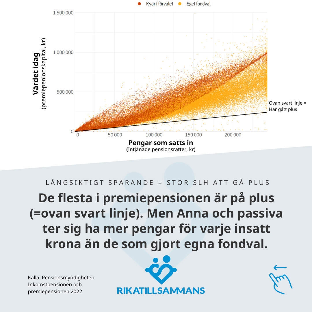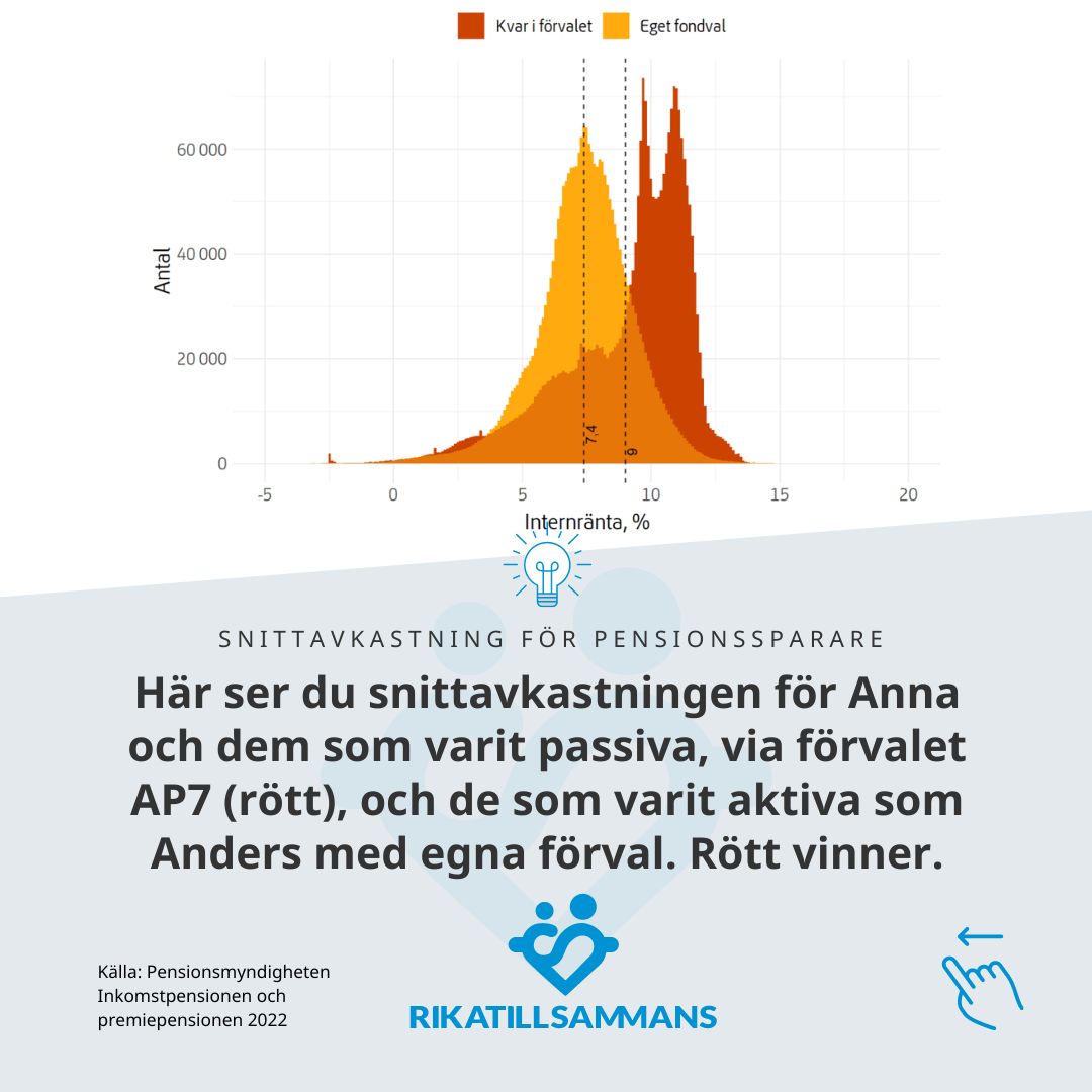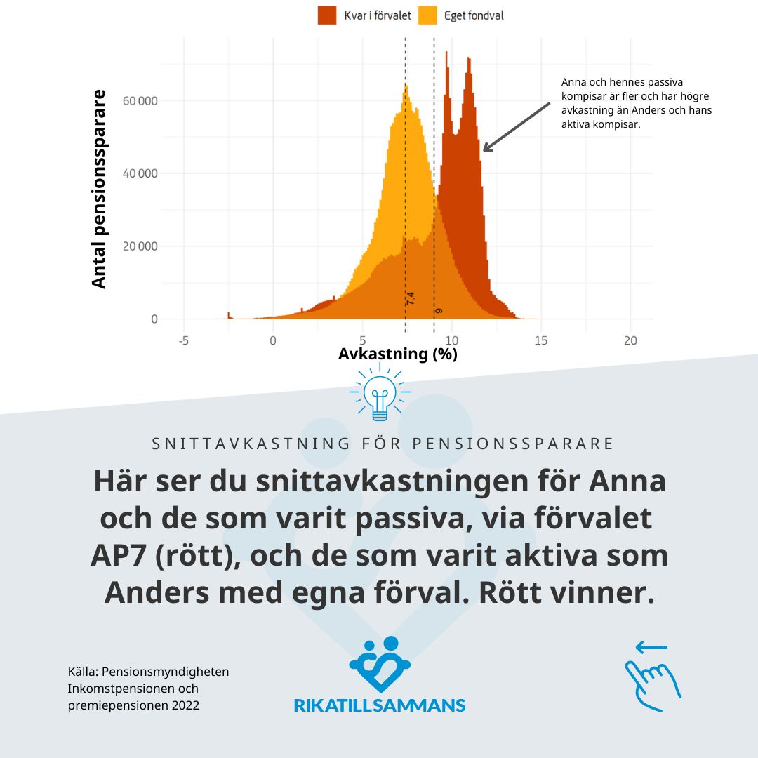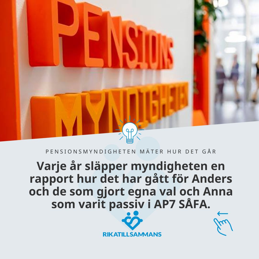 Varje år publicerar @pensionsmyndigheten en rapport som jämför hur det har gått för aktiva spararna som Anders och de passiva sparararna som är kvar i AP7.