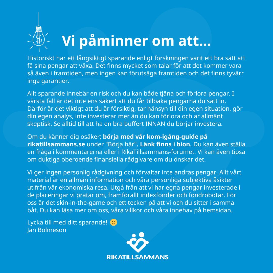 Spara gärna dessa bilder, de kan vara bra att ha nästa gång någon - kanske en bankrådgivare - föreslår att du borde vara mer aktiv med dina fondval. Tipsa gärna även någon som du tror kan ha glädje av denna kunskap. ![]()