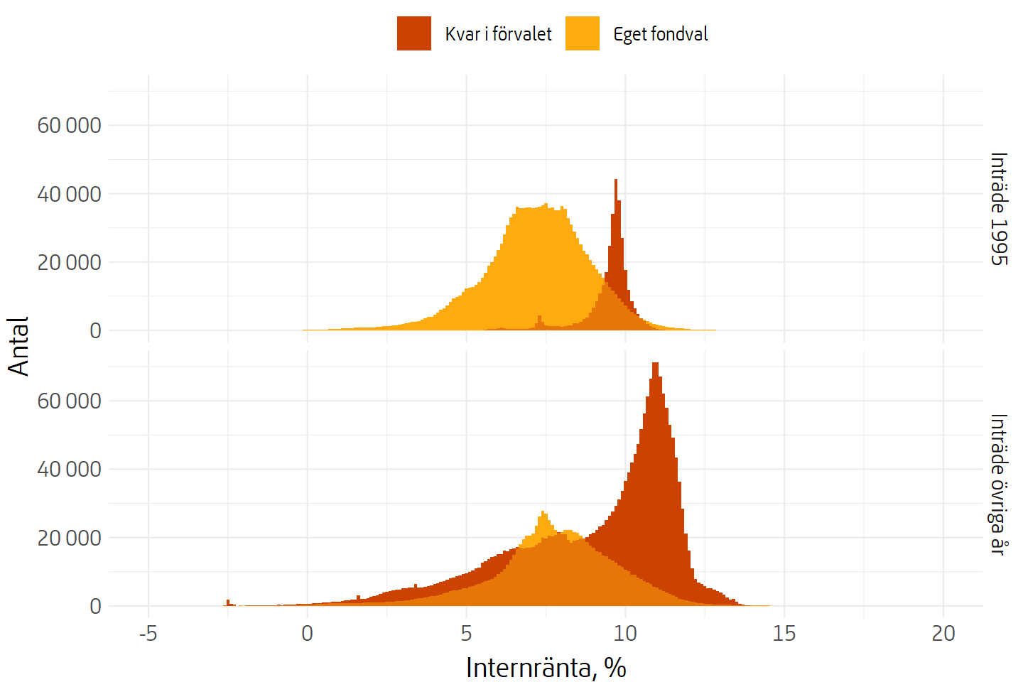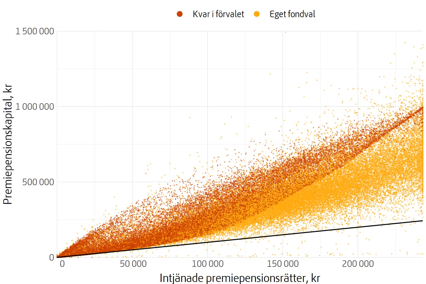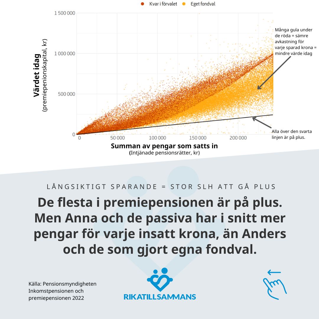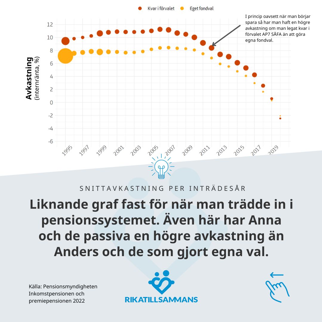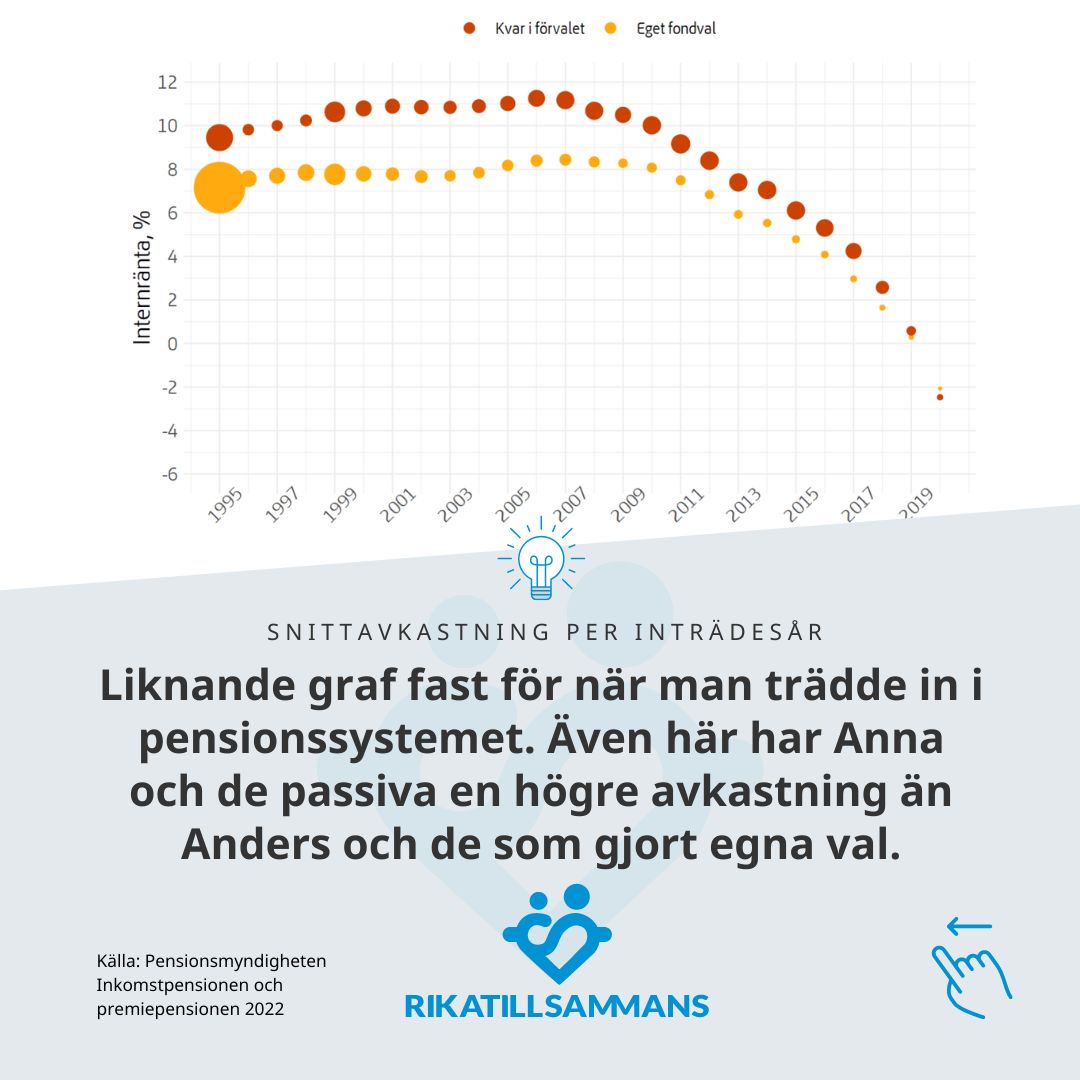 Vem har fått bäst avkastning i premiepensionen? Anders som är duktig och gör egna fondval, eller Anna som inte gjort något alls.