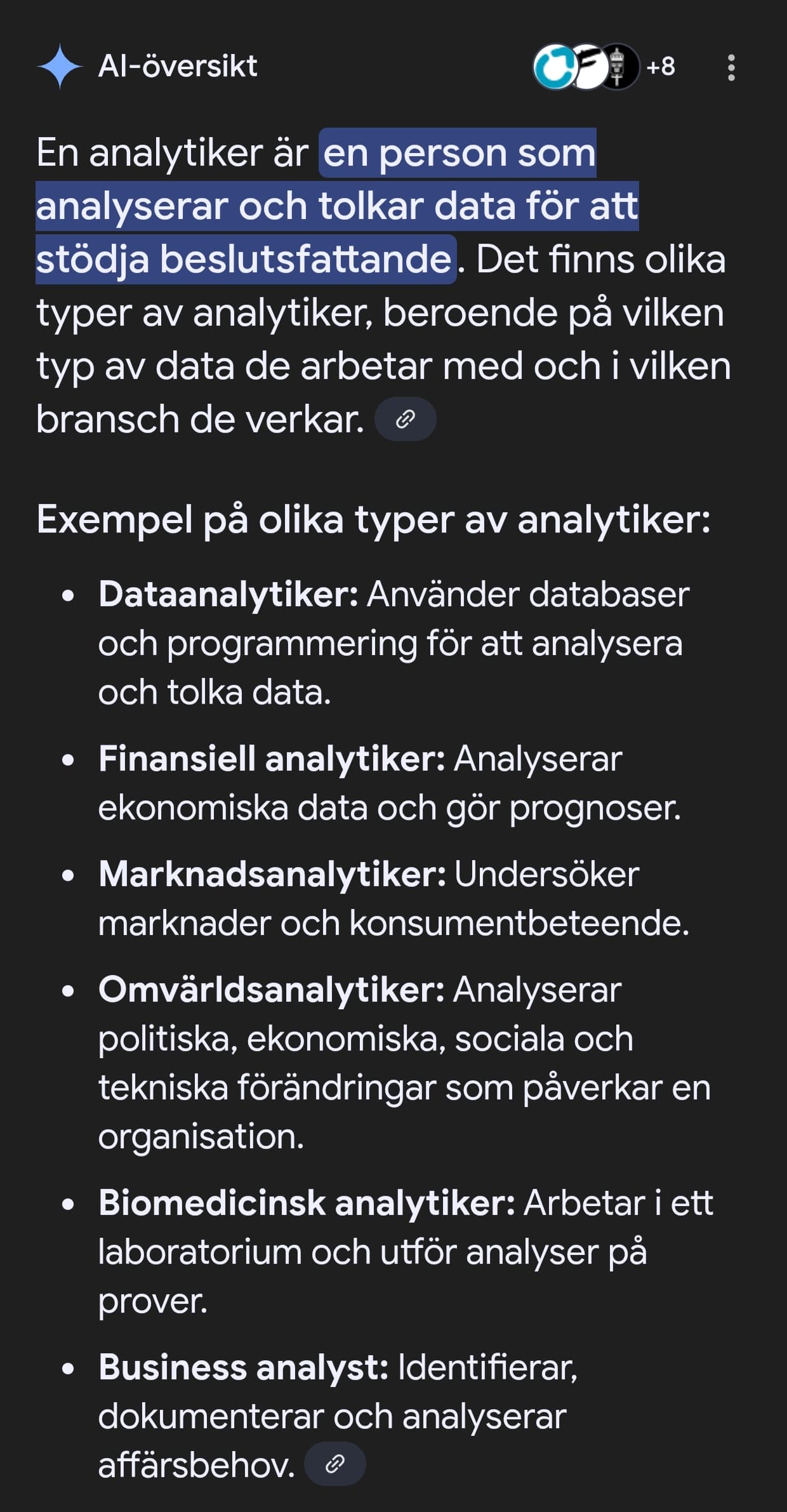 Läkare känns därför som ett naturligt val eftersom jag tror att jag hade kunnat hitta ett intressant område och få just de där utredande delarna och bli expert. Det som skrämmer där är ju den långa vägen till att bli specialist. Vet inte om jag är redo att lägga 10+ år på att utbilda mig med risk av att missa chansen att t.ex kunna bilda familj.