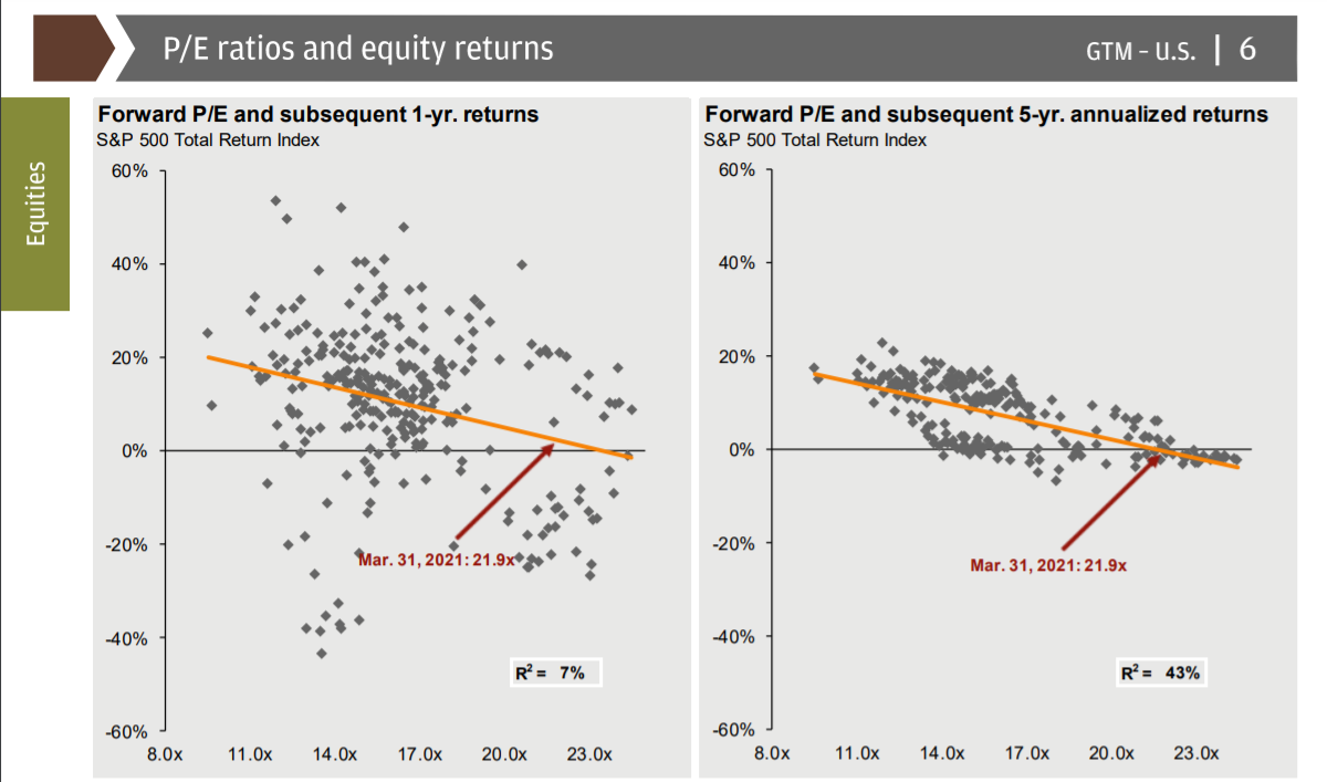 Grafen visar “forward P/E” mot historisk avkastning dvs det är ett estimerat framåtblickande P/E (inte det som baseras direkt på historiska earnings). Man kan ju fråga sig om dessa tal kan sjunka post-covid, så att den förväntade avkastningen därmed ökar?