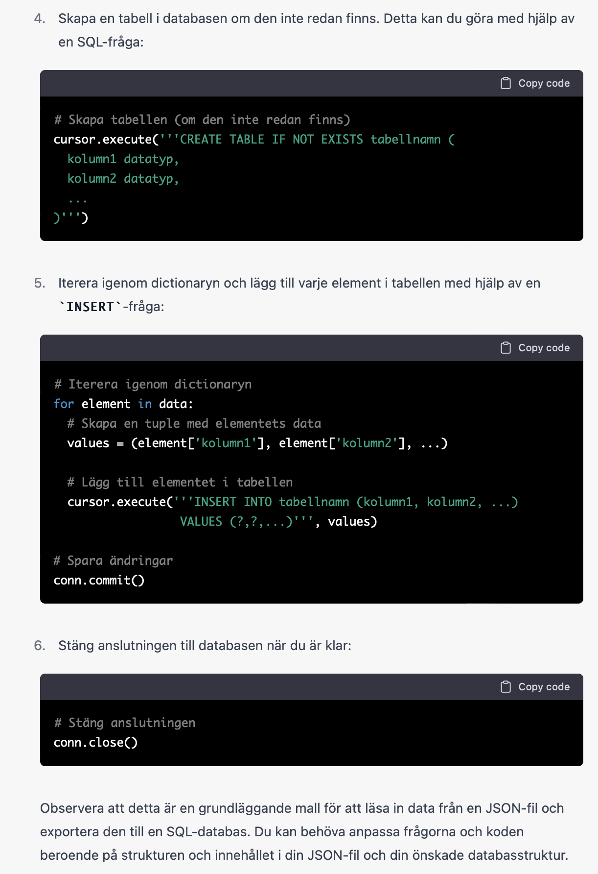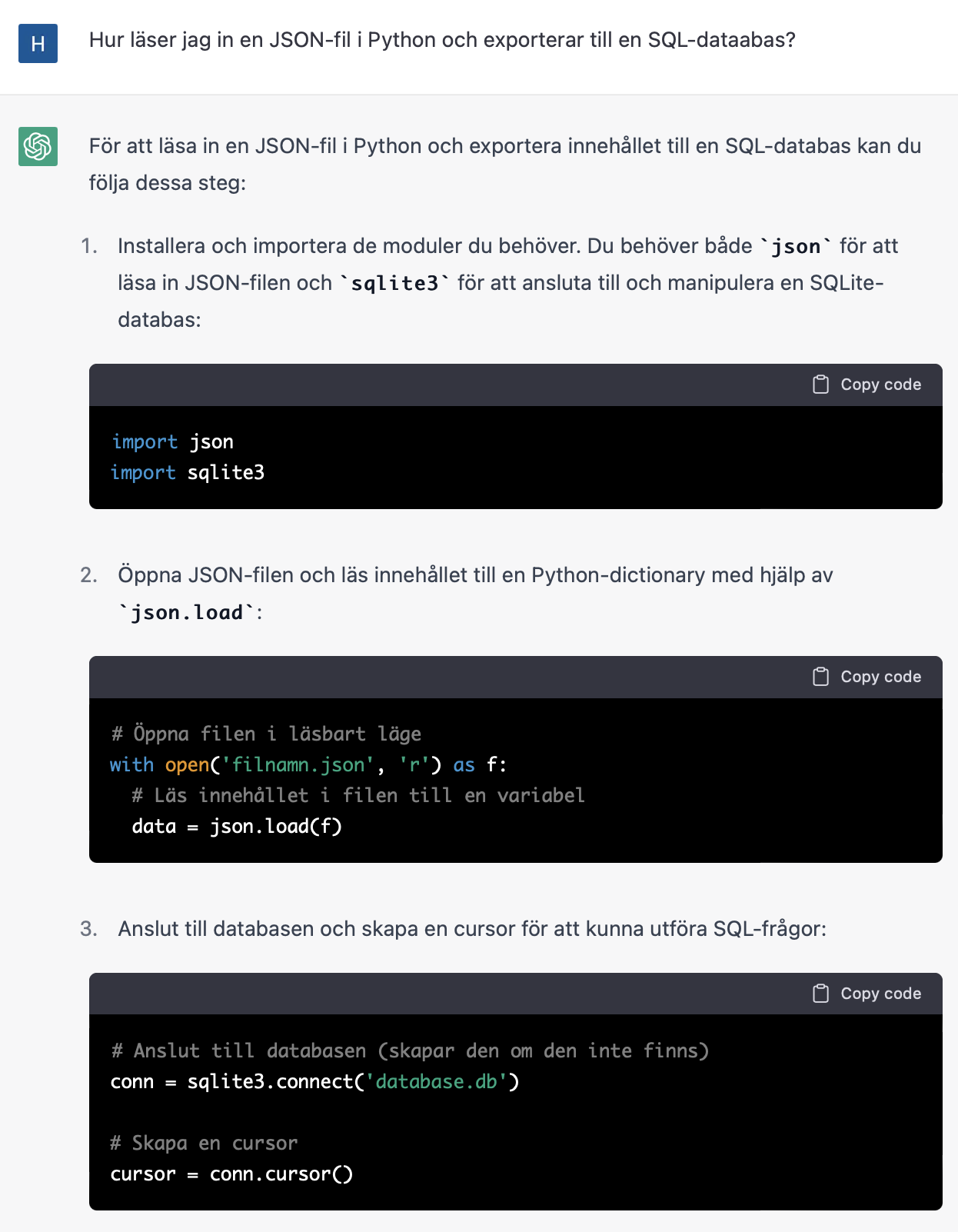 Frågar man om programmering ger den ganska imponerande svar tycker jag, det är väl lättare att hitta strukturerad information kring detta än för allmänna ämnen kanske. Jag halkade på ordet databas men det gjorde inget.