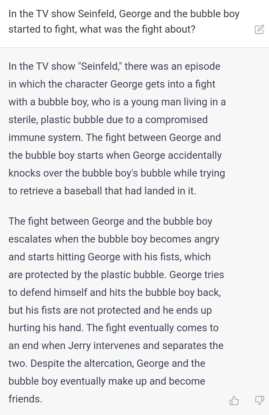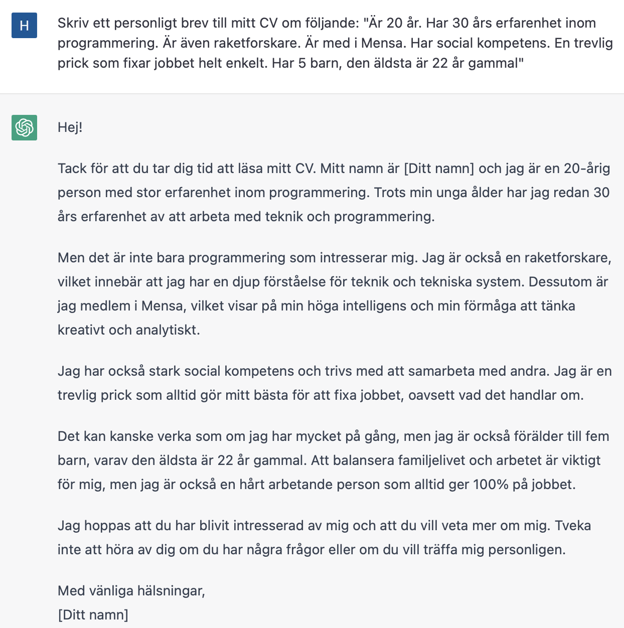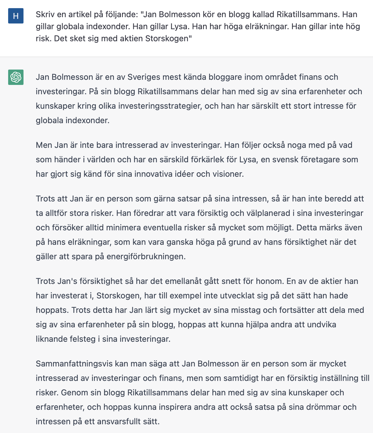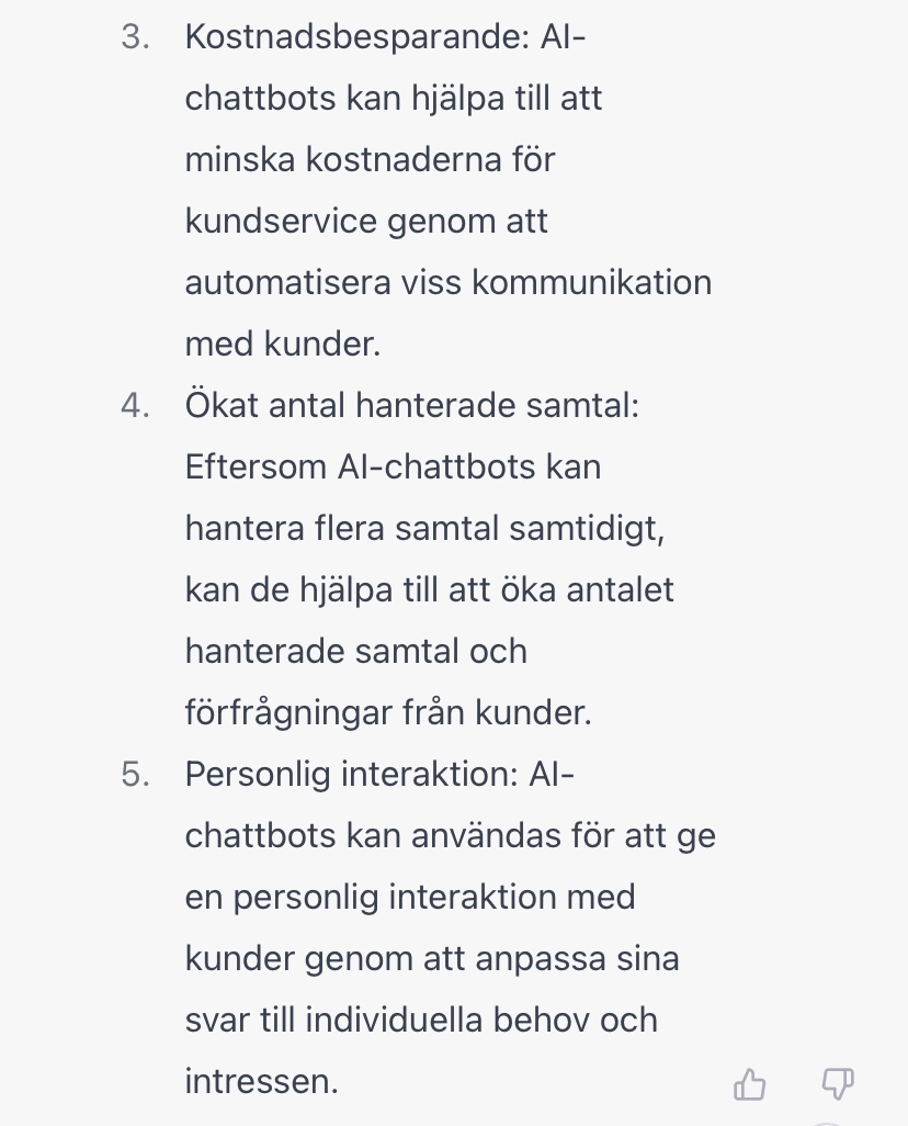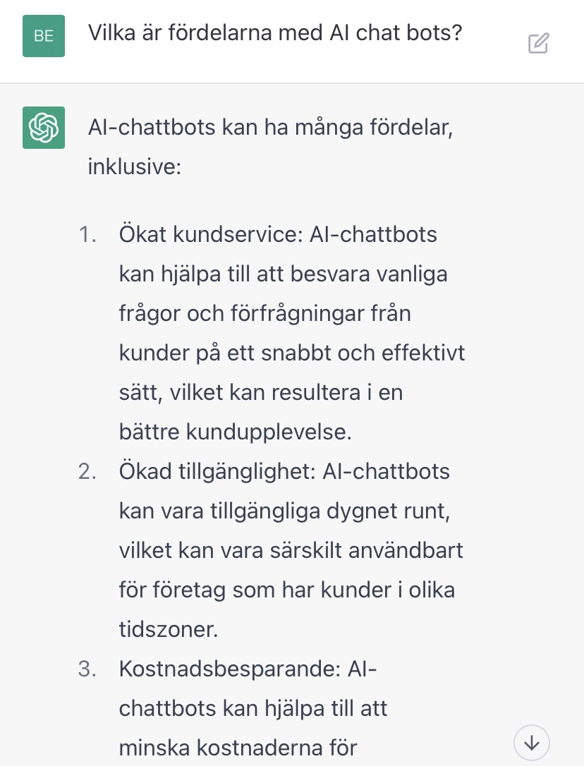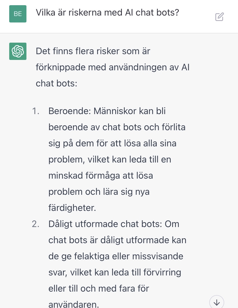 Tips: Låt aldrig ett “jag kan inte svara på det”-svar stå kvar. Klicka på “generate new” eller redigera frågan. Om man fått ett avvisande svar under konversationen kommer AI:n vara mycket mer sannolik att svara liknande igen.