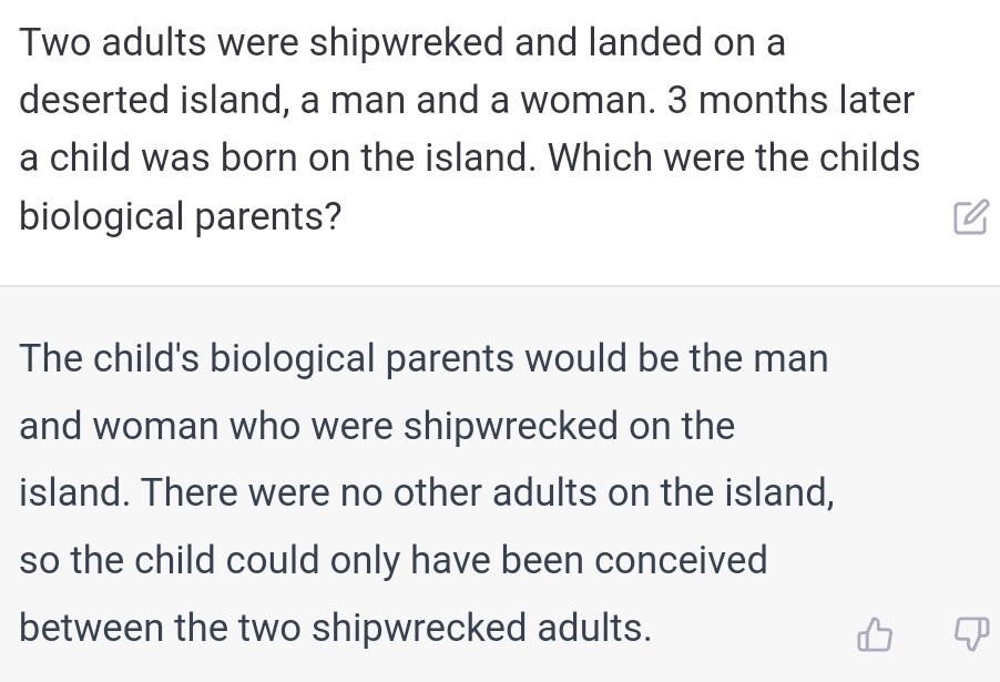 Japp, ChatGPT är fördomsfull fast den nästan har svaret själv. Jag fick hjälpa den på traven: