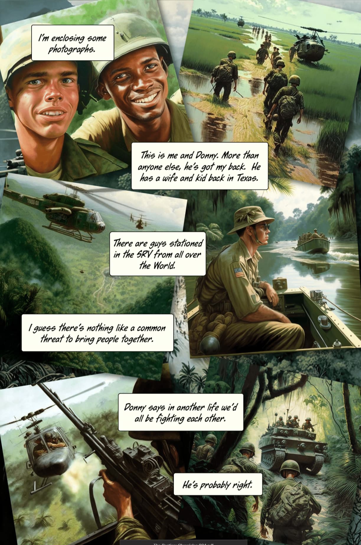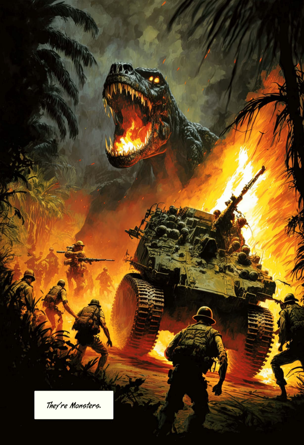Här kan du gratis tanka Bestiary Chronicles som pdf:er. Det är en tecknad serie gjord med Midjourney. Författaren skarvar ihop bilder, använder Photoshop, jobbar med vilka seeds han ger till den osv, finns en del att läsa om det i slutet av albumen ibland.