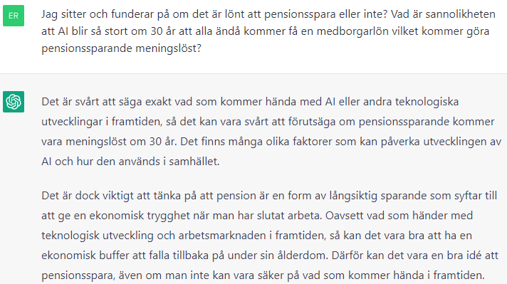 Jag skulle säga att den gav ett okej svar, och det viktiga i sammanhanget, ett betydligt mer rimligt svar än de föregående versionerna av GPT-serien.