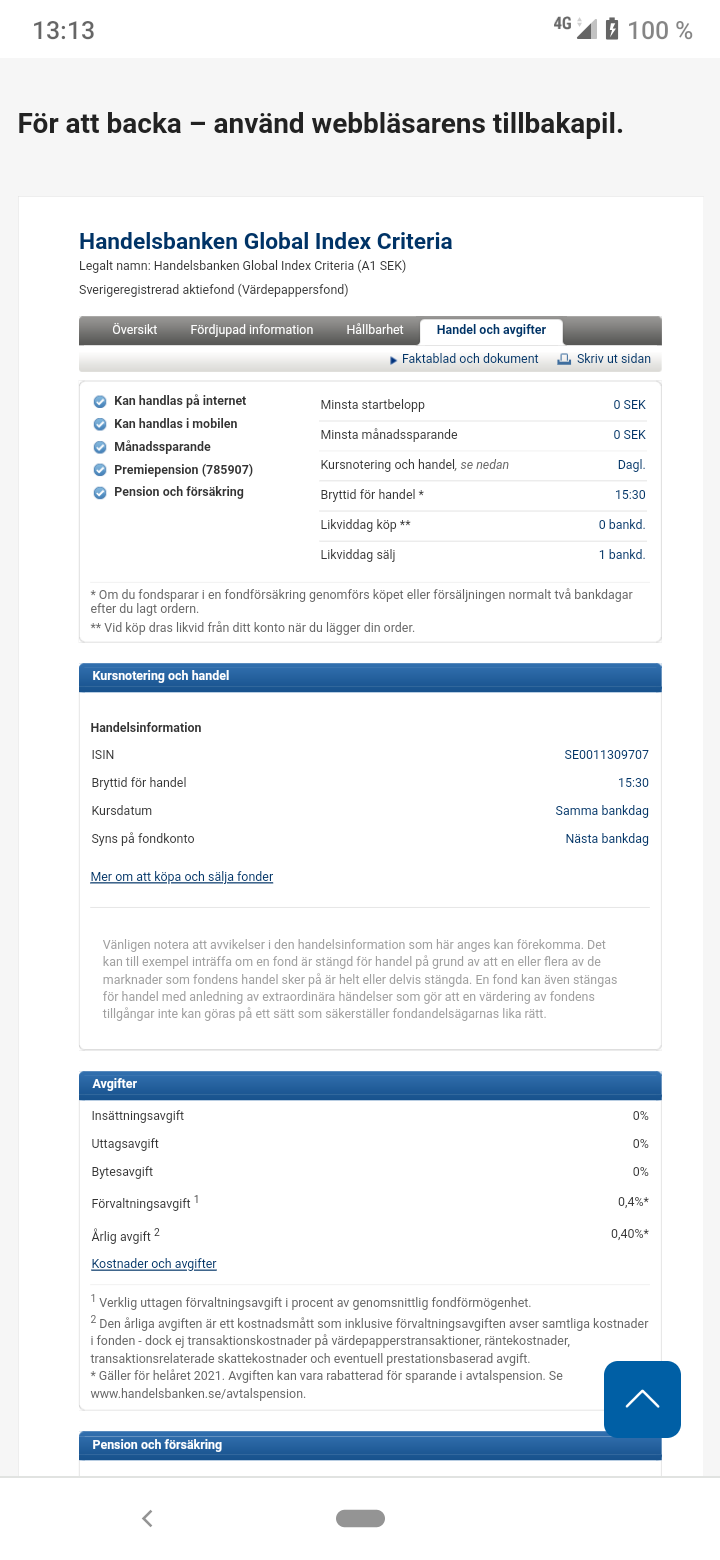 Har ett sparande på Handelsbanken idag i en ISK. Där har jag ett gäng fonder, varav vissa är Handelsbankens egna. Däremot har jag några andra från externa bolag.