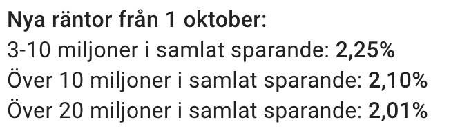 Om Avanza Private Banking sänker med 25 punkter till 2.25% kommer ta massa arga kunder från de stora kartellbankerna. Det skulle bli strategist. Vi väntar Avanzas beslut på 1a Oktober ![]()