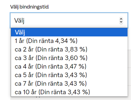 Danske bank har ett bra erbjudande om man är inne på att binda lånet på 2 år. 4,1%.