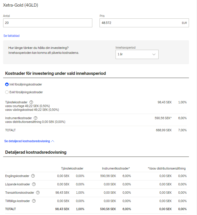 I (?) boxen står det lite om spreadkostnader för “instrument” men jag undrar om det verkligen bara är spread. När jag ändrar på innehavstiden så ändrar sig inte denna kostnad så den är engångs, så vi får se vad de svarar.