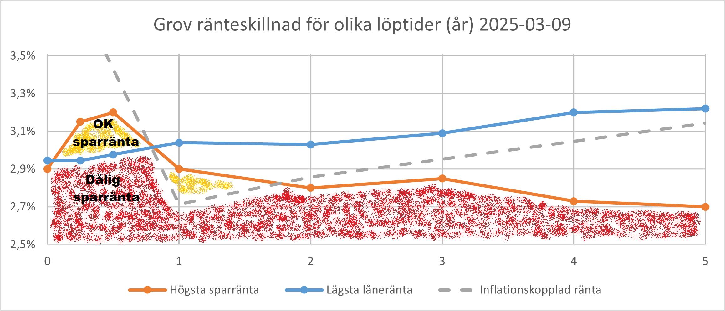 Sammantaget har vi med tidigare indelningar därför inte längre några utmärkta sparräntor att välja bland. Däremot finns fortfarande de som är OK, i princip begränsade till konton med 3 och 6 månaders bindningstid.