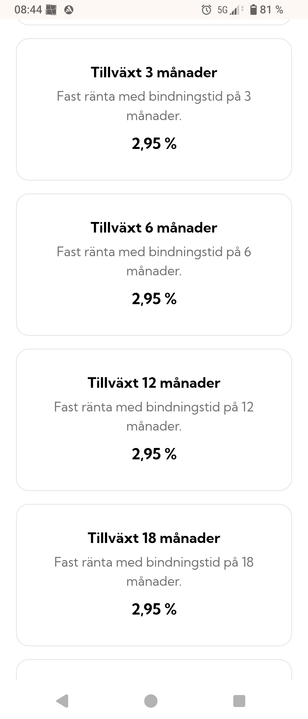 Nu har Brocc höjt räntan även på 3 månader. Så nu har de samma ränta 2,95% på 3 månader, 6 månader, 12 månader och 18 månader.