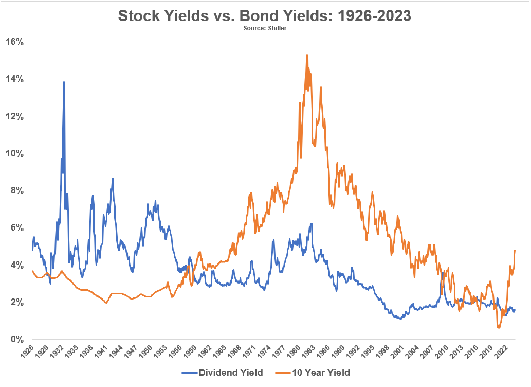 Apropå utdelningsstrategier så kan jag ibland tycka att det är spännande att räntor ger en högre yield än aktier… Från Ben Carlson idag: The Difference Between Stocks & Bonds - A Wealth of Common Sense