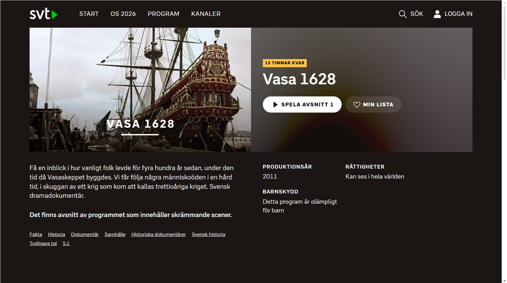 Bilderna hämtade ur SVT:s miniserie om regalskeppet Vasa.