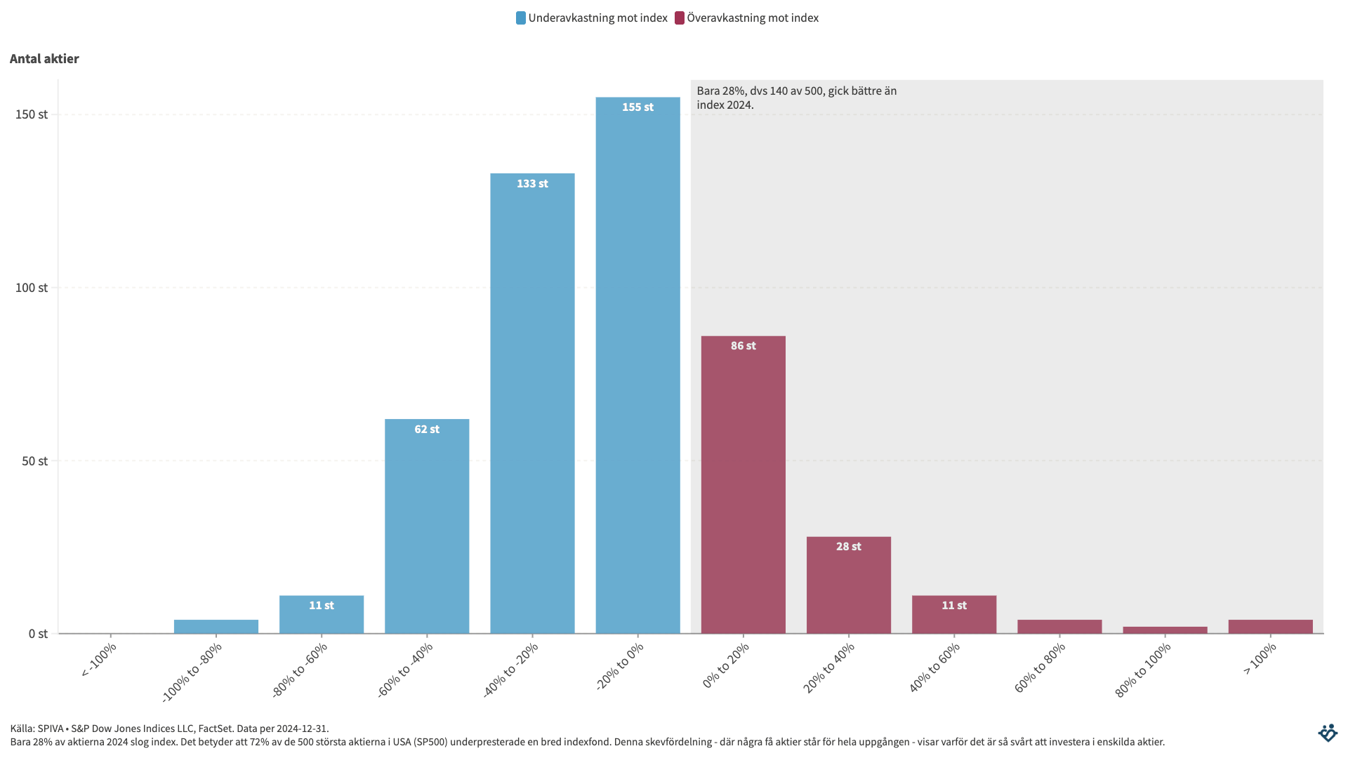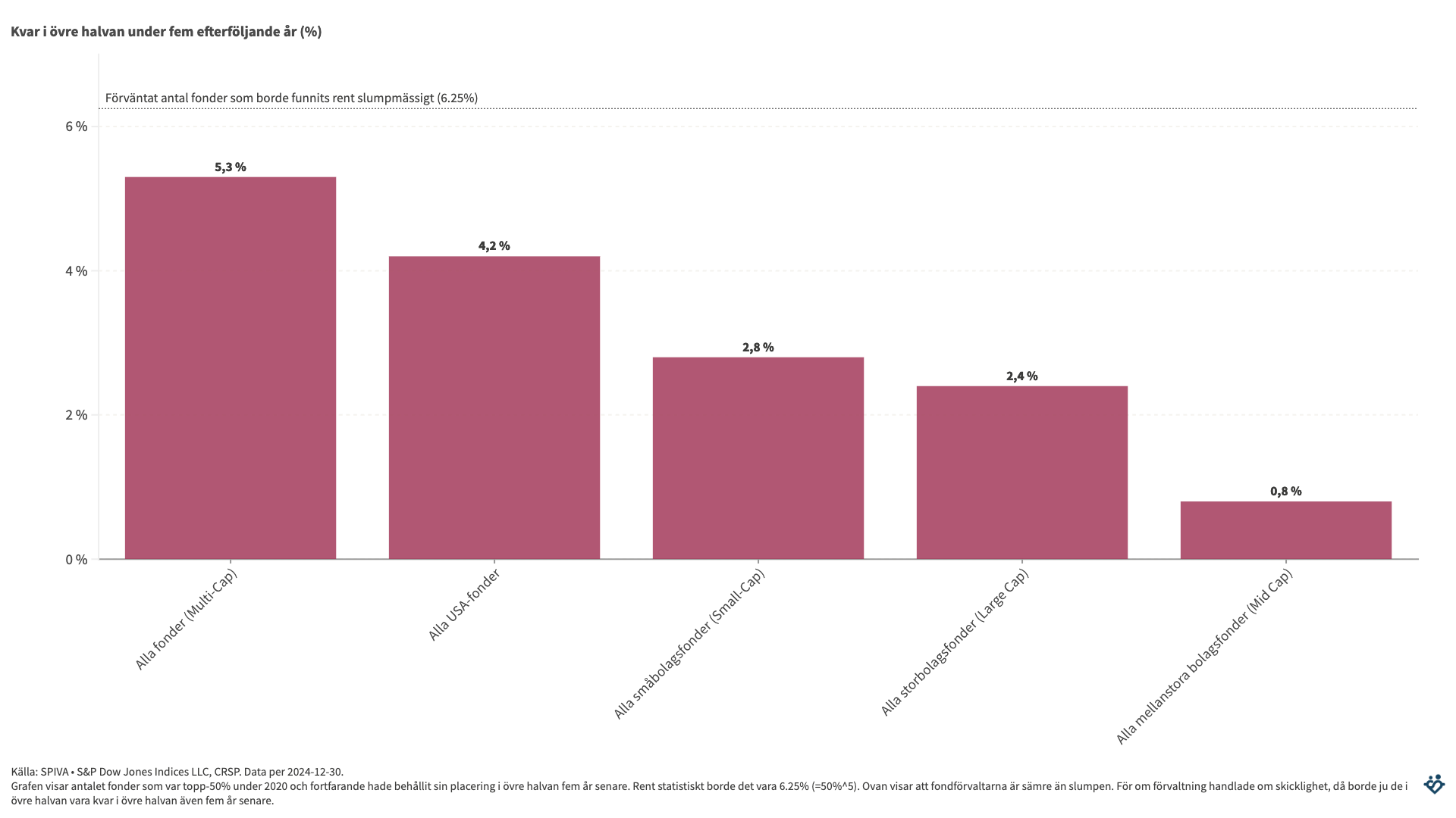Jämförelse av hur många aktivt förvaltade globalfonder som slog sitt index 2013-2024. 5 månader sedan