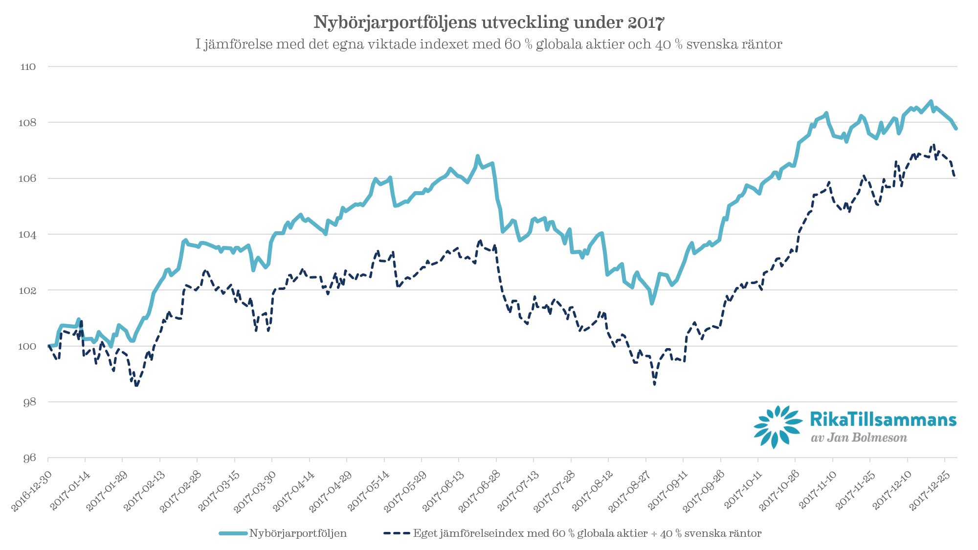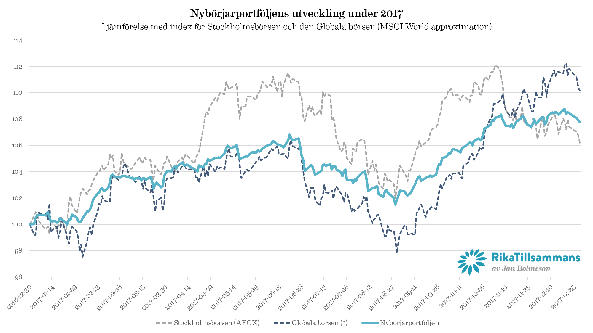 - Uppföljning av RikaTillsammans-portföljen för 2017: +3,4 procent - Utvärdering av RikaTillsammans-portföljen för det gångna året och sedan starten 2014