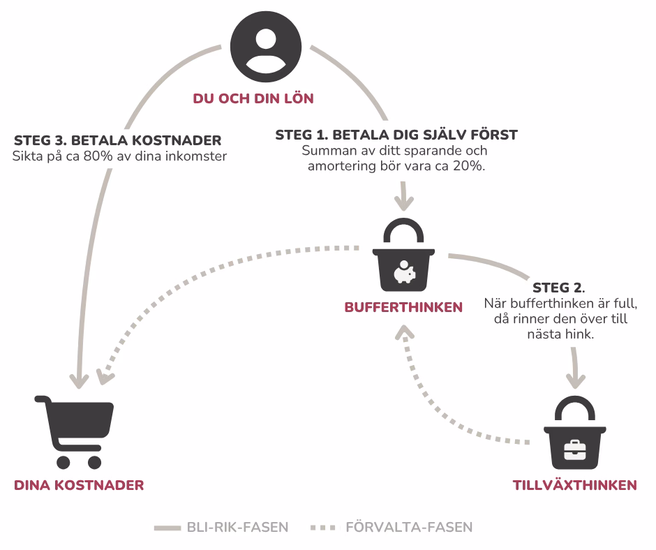 - 2. Fyll på bufferthinken tills den är fylld med 0.5 – 6 månadsutgifter baserat på din situation